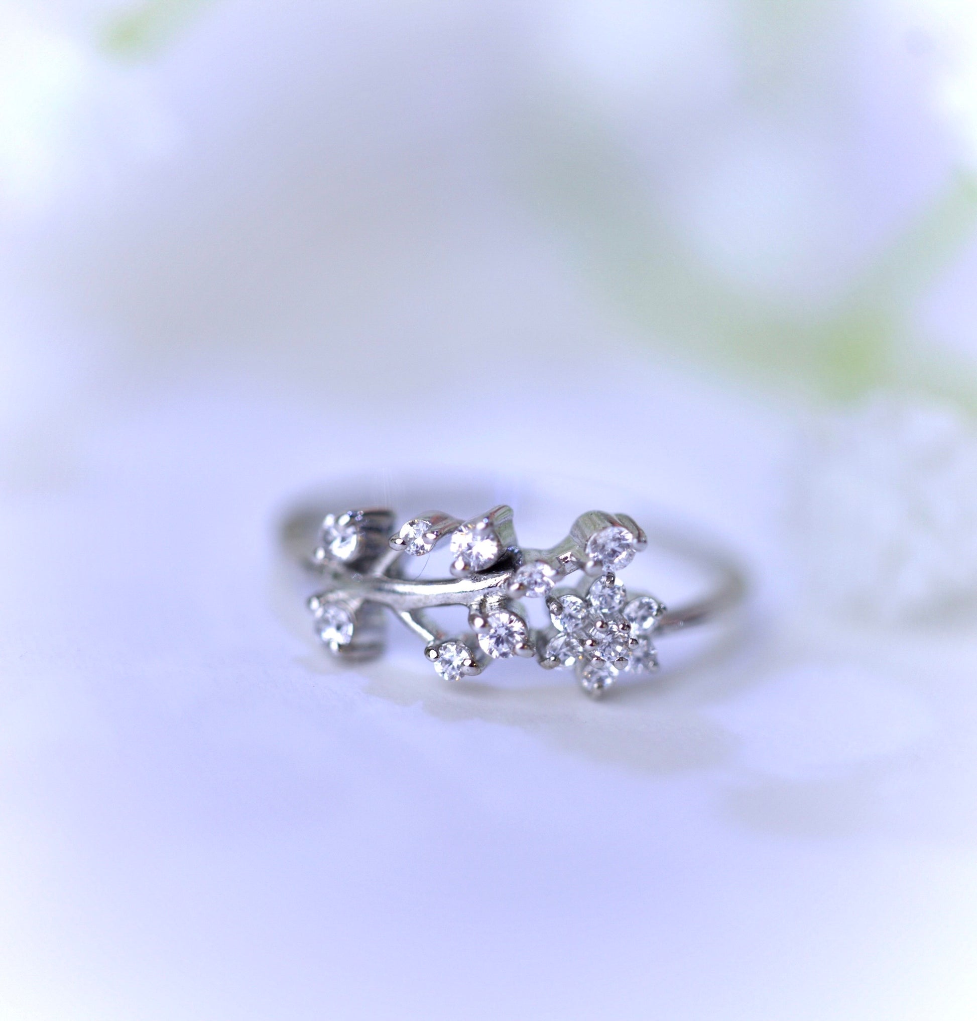 Inspired by Edinburgh's Meadows during spring, this delicate ring showcases intricate flowers and leaves, capturing the essence of a blooming landscape. Its dainty design offers a refined touch, making it an ideal choice for those who enjoy elegant simplicity.