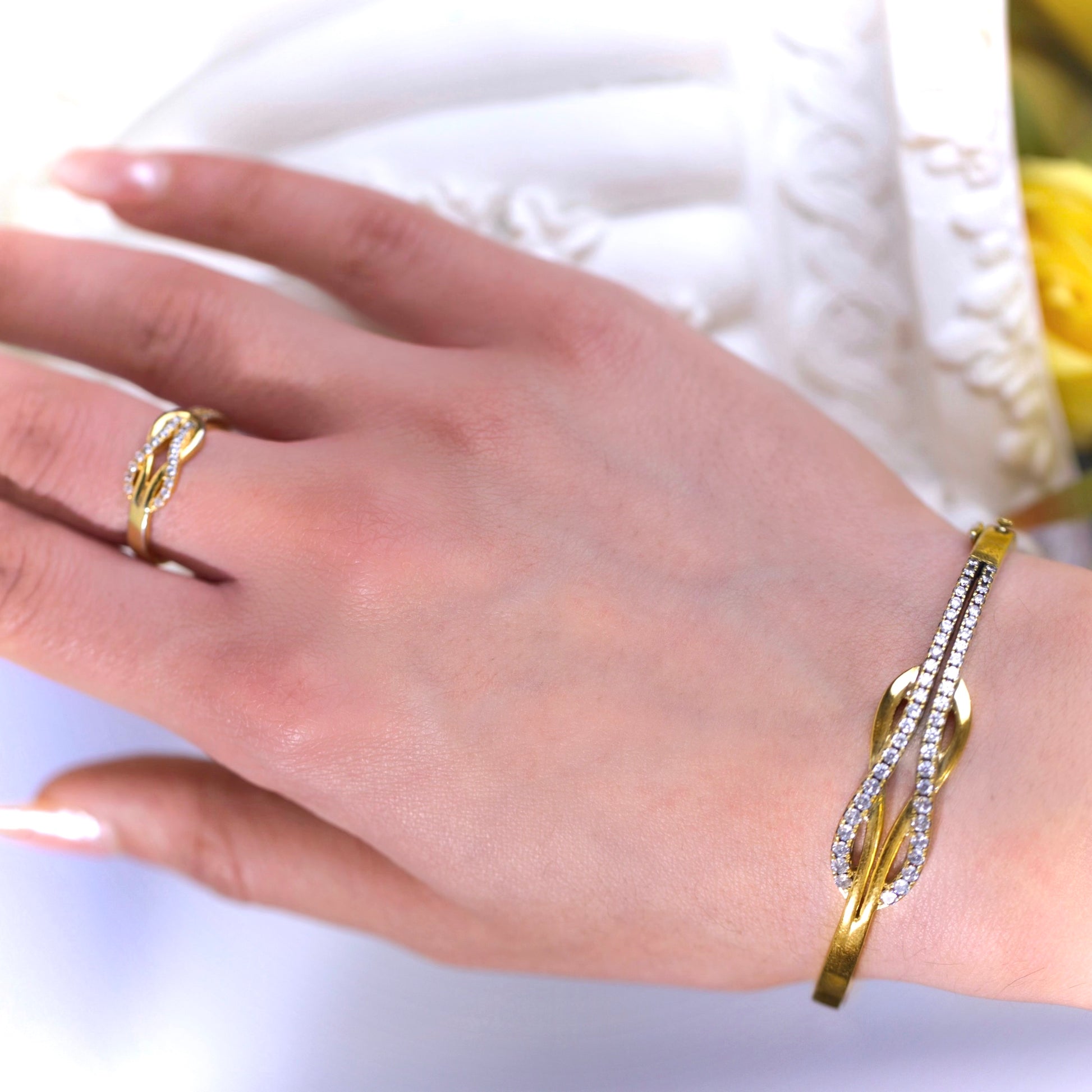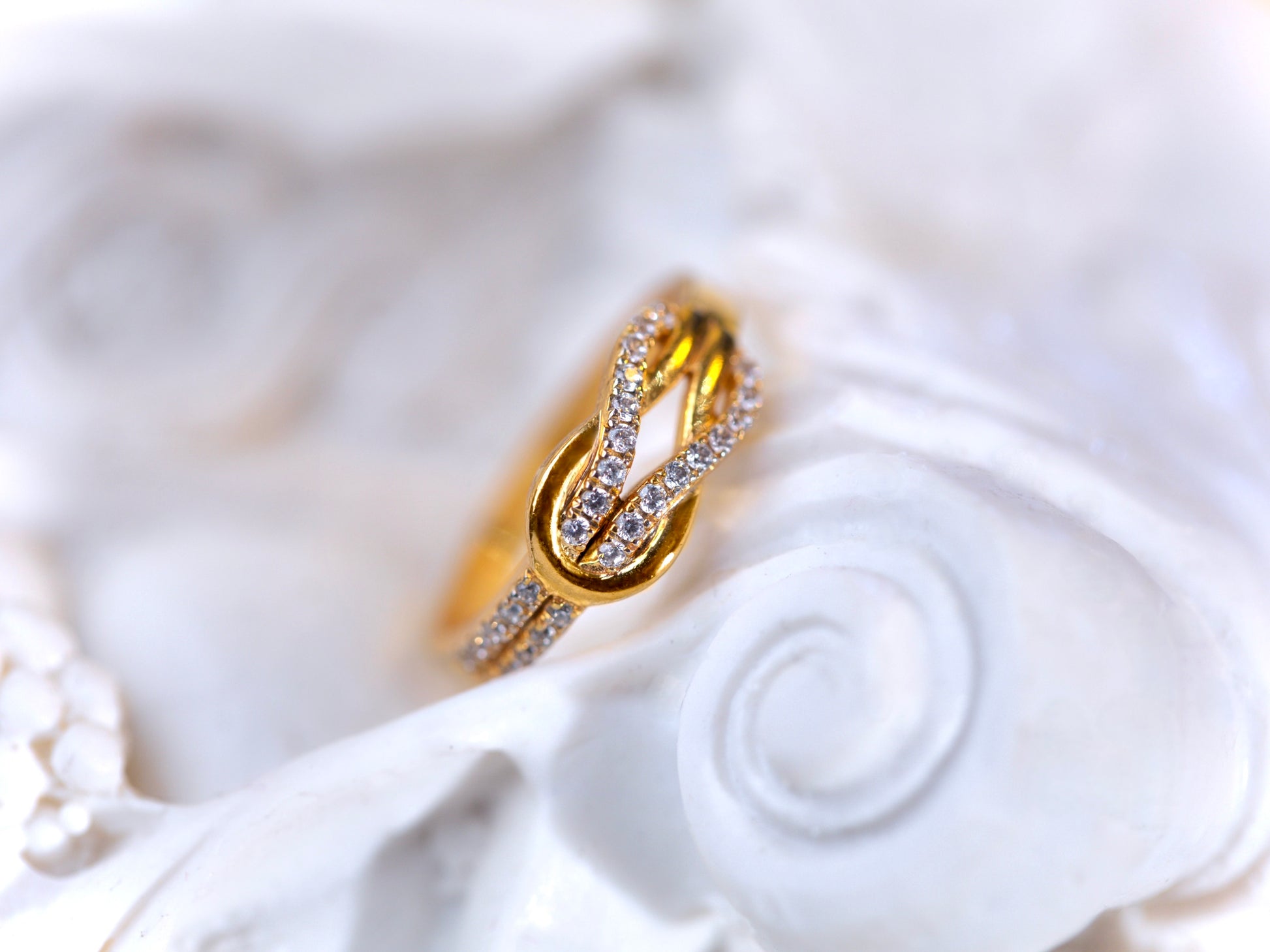 This ring features a striking knot design at its centre, inspired by the historic charm of Edinburgh's Old Town. One half of the ring is studded with stones, representing modernity, while the other half remains unadorned, symbolising how modern times are tied to history. This design beautifully embodies the bond that is eternally tied together.