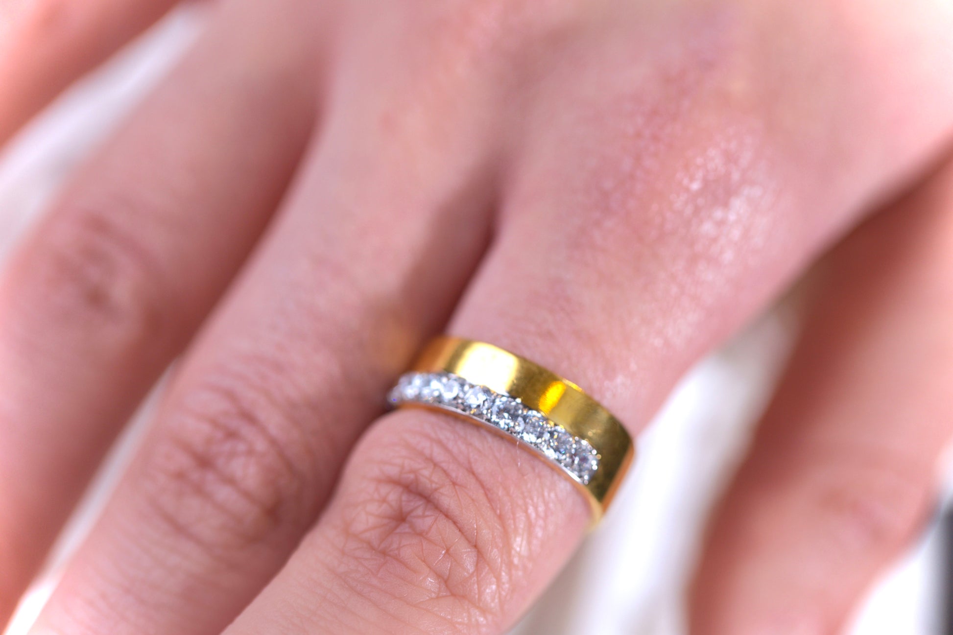 Download a standard ring sizer app, place your existing ring on the screen, adjust the outline for accuracy, and the app will provide your size. For more information, please visit the Sizing section in the footer of our website.